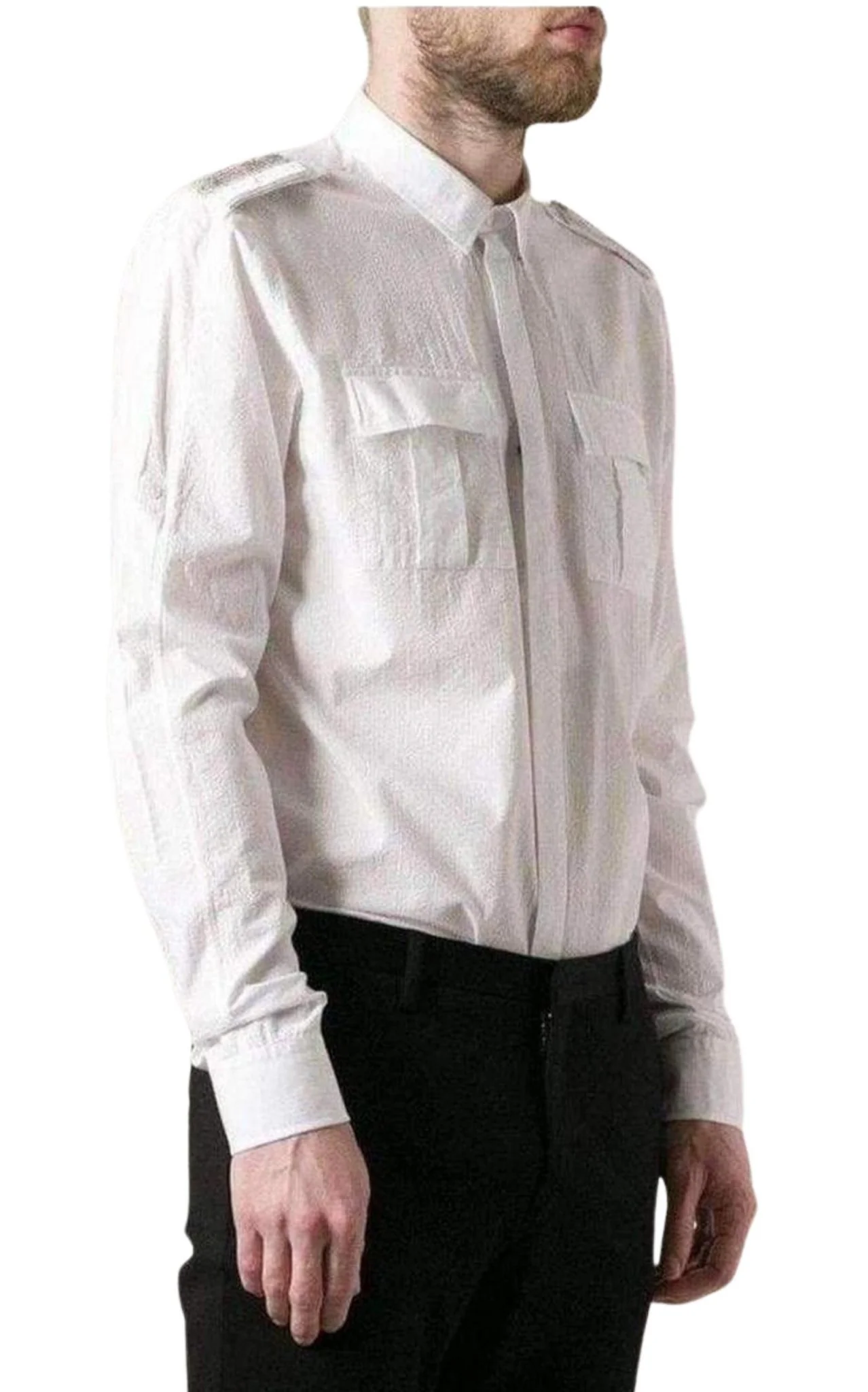 White Cotton Military Shirt—